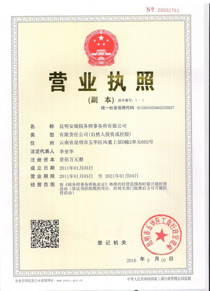 · 安瑞事務所是云南省地方稅務局的入圍事務所之一
